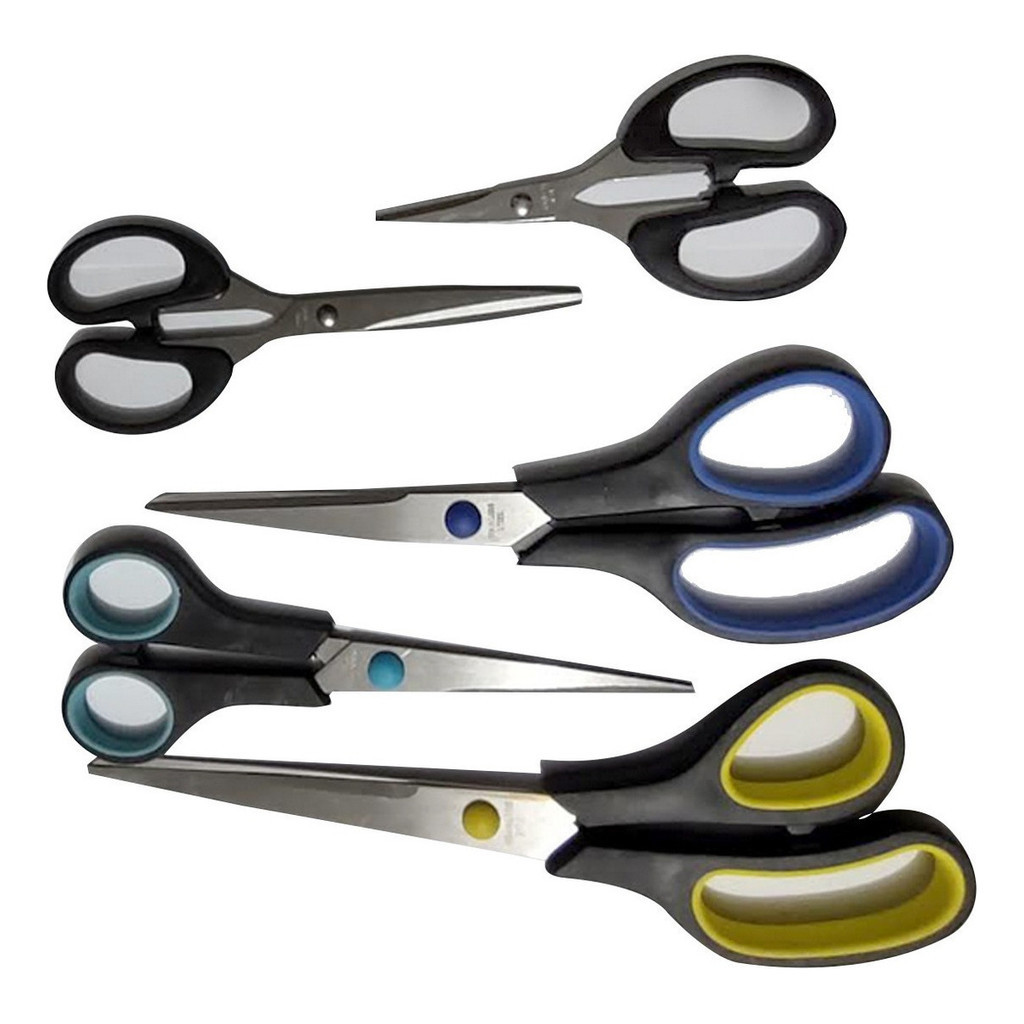 Kit 5 Tesouras Multiuso Cabelo Papel Plastico Borracha Eva
