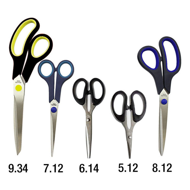 KIT COM 05 TESOURAS Multiuso, uso diverso, casa, cabelo, artesanato, EVA, papel, escola etc Material da Lâmina : Aço Inoxidável Resistente ================================================= ESPECIFICAÇÕES : Tamanhos: 1pc. - 5,5 " Tesoura 1pc. - 7,5 " Tesoura 1pc. - 6 1/4 " Tesoura 1pc. - 8,5" Tesoura 1pc. - 9 3/4 Tesoura