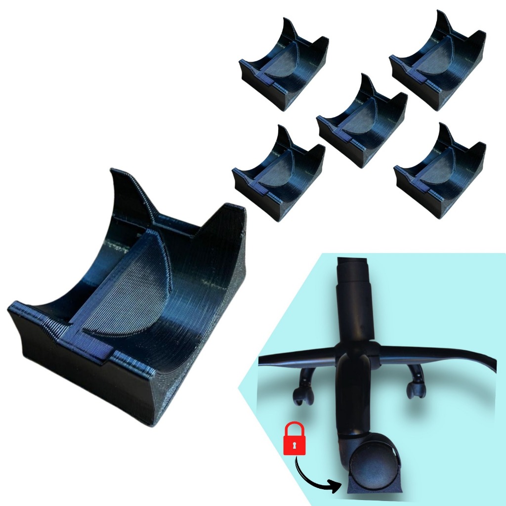 Trava Rodinhas Cadeira Suporte com maior resistência e durabilidade, proporcionando uma trava confiável que ao erguer a cadeira as travas continuam fixas na rodinha, facilitando assim a mudança de lugar da cadeira sem desencaixar o suporte, Com uma trava poderosa e revestimento antiderrapante de alta densidade, não descola com o uso trazendo estabilidade e segurança excepcionais. Melhore sua experiência de trabalho ou jogo com nossa trava durável e confiável. • O MAIS RESISTENTE NO MERCADO • FABRICADO EM PLÁSTICO - • Base antiderrapante de alta densidade • Serve para todos modelos e tamanhos de rodinhas • Não risca o piso • Ideal para jogos de simuladores • Cor: Black Piano * Medidas: 6cm x 4,5cm x 3cm Garantia de fábrica: 1 meses