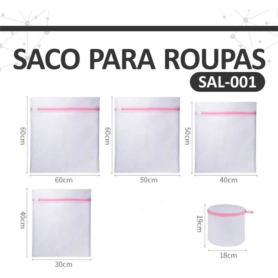 ⭐️ Kit Com 5 Sacos Protetores Para Lavagem De Roupas Delicadas Com Zíper ⭐️ Saco para lavar roupas delicadas, ideal para peças íntimas, meias, camisas, blusas de lã, entre outros. Durante a lavagem protege suas roupas do entrelaçamento dos fios, fiapos e da deformação do tecido na máquina de lavar. Suas roupas delicadas sempre protegidas! Conteúdo da Embalagem: ⭐️Saco1: 60cm X 60cm. ⭐️Saco2: 60cm X 50cm. ⭐️Saco3: 50cm X 40cm. ⭐️Saco4: 40cm X 30cm. ⭐️Saco5: 19cm X 18cm. Material: Fibras de Poliéster. Cor: Branco com Rosa. 👉 LOJA OFICIAL DEINES! 😍 Temos os melhores preço e a melhor qualidade, conheça nossa Loja!!! 😍