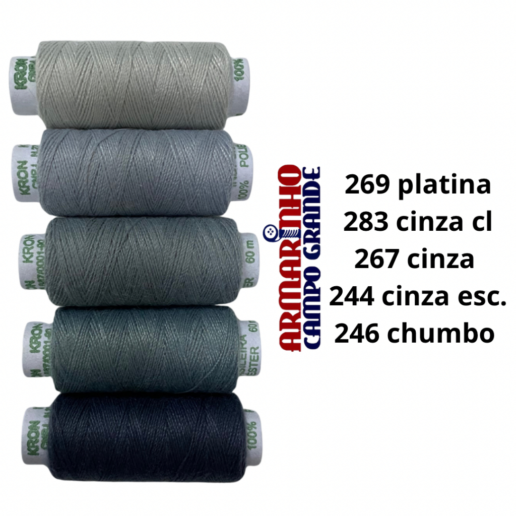 💕KIT CONTENDO 5 UNIDADES DA LINHA DE PESPONTO 60M KRON 💕CONTÉM 5 TUBOS COM 60M CADA UM →100% POLIESTER →60M CADA TUBO 😍