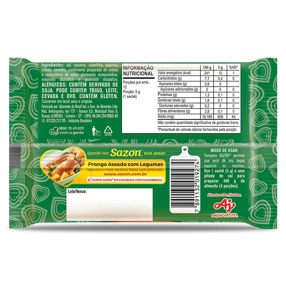 | Kit 5 Unidades Tempero em pó SAZÓN® para Frango 60G este produto | R$ 39,60 | — | 5.0/5 | 2 |