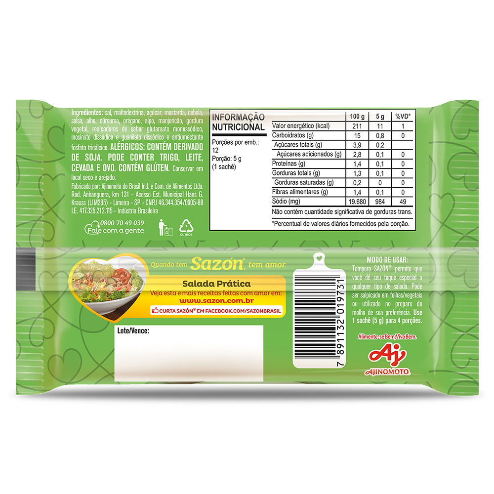 Kit 5 Unidades Tempero em pó SAZÓN® para Salada 60G