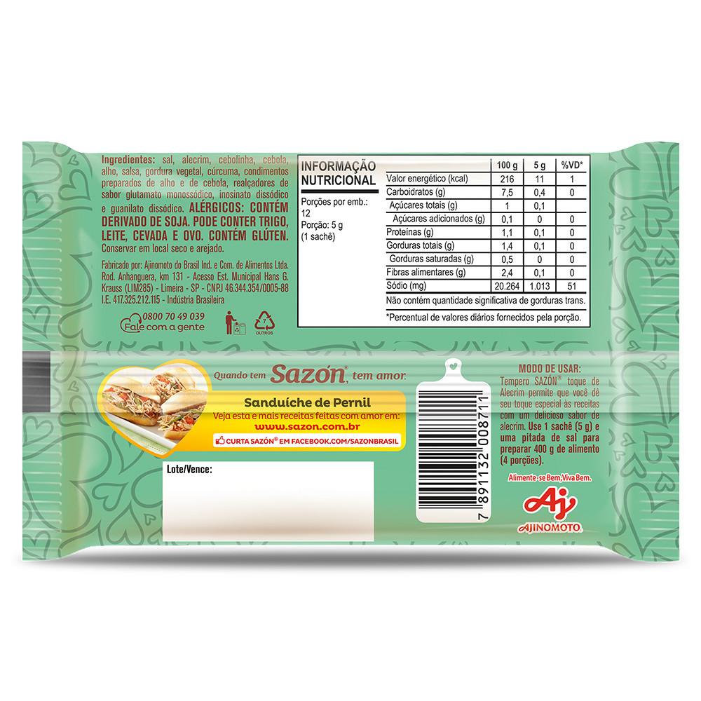 | Kit 5 Unidades Tempero em pó Sazón® Toque Alecrim 60G este produto | R$ 39,60 | — | 5.0/5 | — |