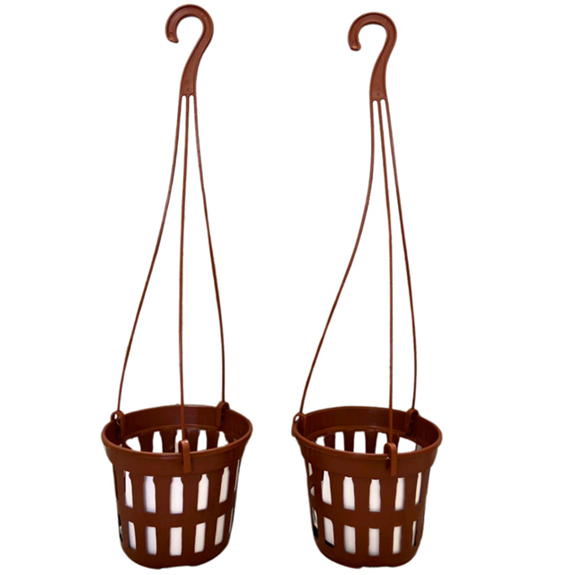 Kit 5 Vasos + 5 Hastes Para Orquídea Pt 15 Plástico Vazado Marrom