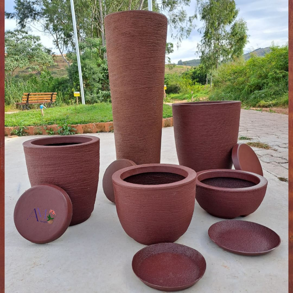 Kit 5 Vasos Polietileno Coluna Bojo N1, N2 e N3 + Bacia Mine + Ibiza Grafiata Para Plantas ou Flores Casa Luxo Decor