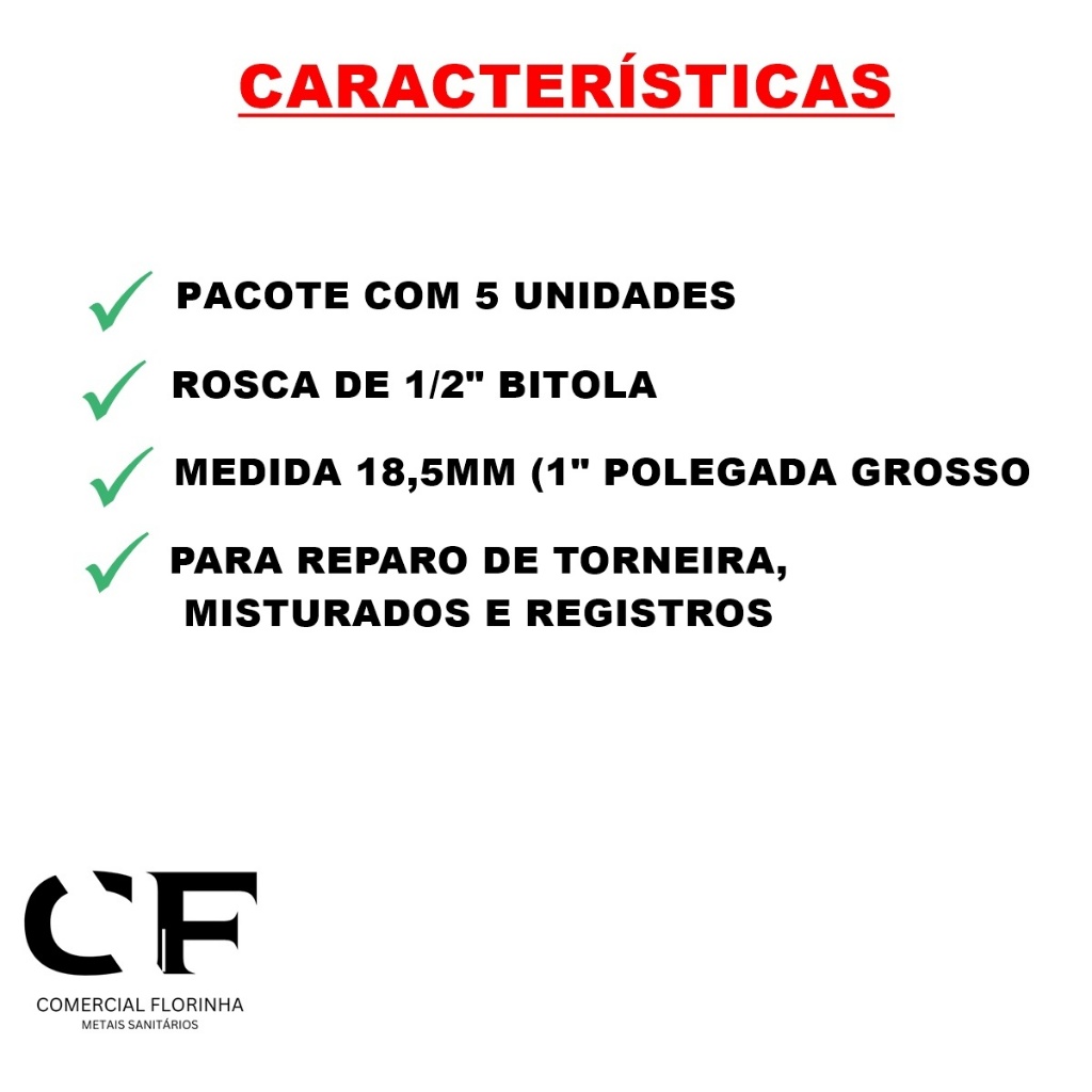 | Kit 5 Vedantes Reparos Registros/torneiras 18,5mm Nitrílico CÓD. 1835 este produto | R$ 12,29 | 10% | 4.8/5 | 4 |