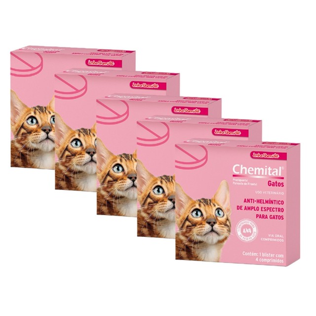 Kit 5 Vermífugo Chemitec Chemital para Gatos - 4 Comprimidos