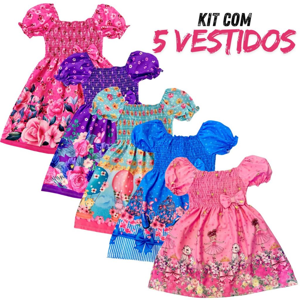 | Kit 5 Vestido Ciganinha Menina Infantil Casual este produto | R$ 119,90 | 60% | 4.9/5 | — |