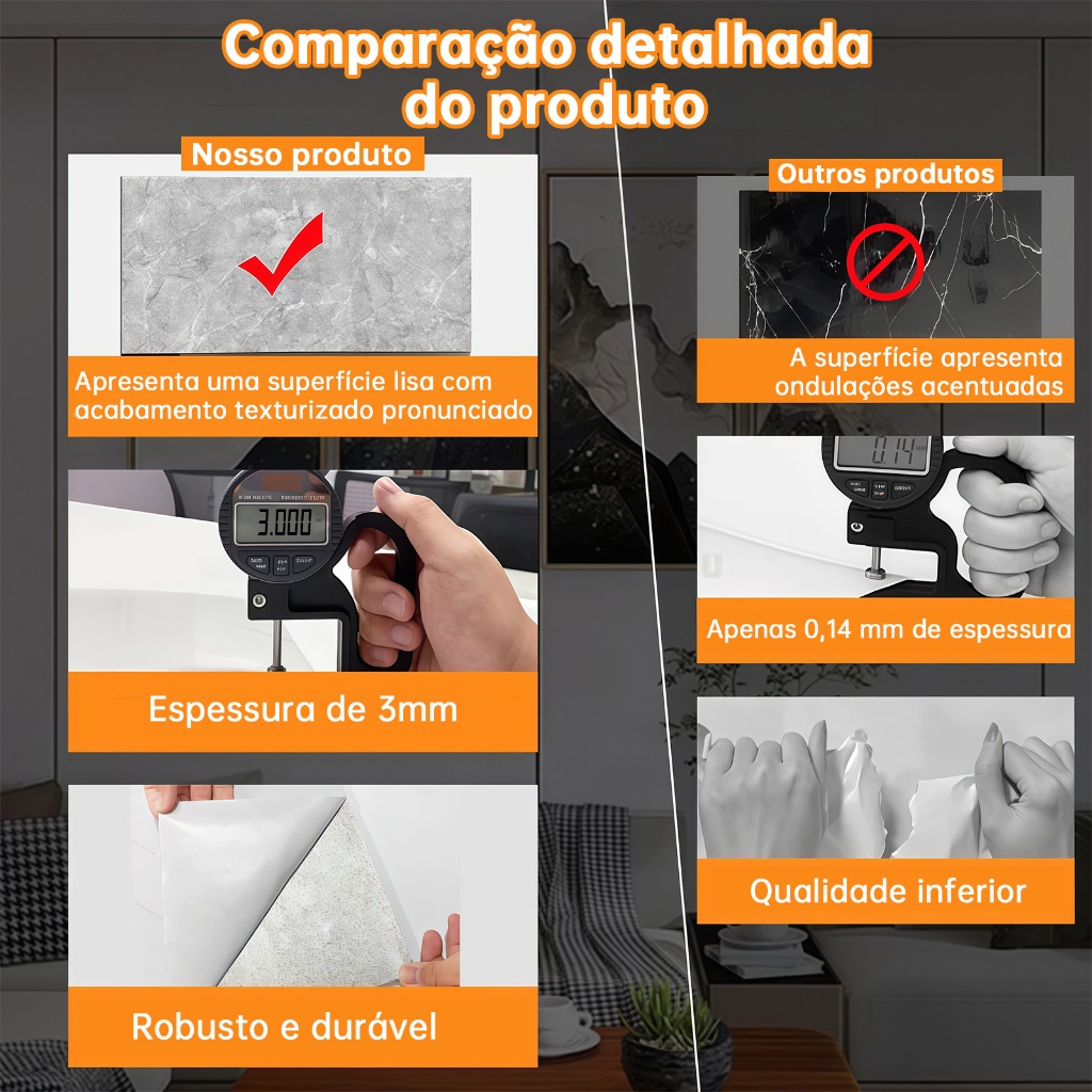 ✅Sobre o produto: ✔ Material: espuma de polietileno / PVC ✔ Aplicação: auto adesiva (destaque e aplique) ✔ Cor: mármore ✔ Largura da placa: 30 cm ✔ Altura da placa: 60 cm ✔ Rendimento da placa: 0.18 m² ✔ Indicado para: ambientes internos / ambientes externos cobertos ✅Diferencial do nosso produto: ✔ Produto idêntico ao mármore. ✔ Custo e beneficio . ✔ Produto de alta qualidade, com junções perfeitas. ✔ Produto auto adesivo, destaque e cole na parede ou teto. ✔ Esconde mofo, rachaduras da sua parede/teto. ✔ Aplicação rápida, sua decoração pronta em poucos minutos. ✔ Sem odores durante e pós instalação (produto sem cheiro). ✔ Fixação da cola de alta resistência. ✔ Recortes para encaixe de tomadas, lustre, interruptores e caixas de luz. ✔ Seguro para as crianças. ✔ Auxilia no isolamento acústico do ambiente. ✔ Auxilia no isolamento térmico do ambiente. ✔ Produto impermeável. ✅Como Instalar: ✔ 1. Limpe bem a superfície onde deseja instalar. ✔ 2. Encha um frasco de 500ml a 750ml com água e adicione 2 colheres de chá de detergente neutro. ✔ 3. Remova o papel de proteção da parte de trás da placa (branco) e borrife uma pequena quantidade da mistura de detergente com água no adesivo e espalhe com a mão sobre toda a superfície, esse processo de adicionar o líquido permitirá que você ajuste perfeitamente a pastilha na parede, atrasando o processo de adesão. ✅Como Cortar: ✔ Uma dúvida muito recorrente dos nossos clientes é como cortar a placa para se adequar a alguns lugares, como por exemplo, tomadas e cantos. Com o auxílio de uma régua, utilize um estilete de lâmina larga e passe uma vez para obter o tamanho desejado para o encaixe. ✅Perguntas Frequentes: ✔ Preciso contratar um instalador para aplicar o produto? R: Não, as placas são super fáceis de serem instaladas, a opção de contratar um instalador fica a critério do cliente. ✔ Posso limpar as placas quando necessário? R:Sim, recomendamos utilizar apenas um pano com detergente apenas . 🚚 Envio Super Rápido 🥰 Para dúvidas, estamos à disposição no chat