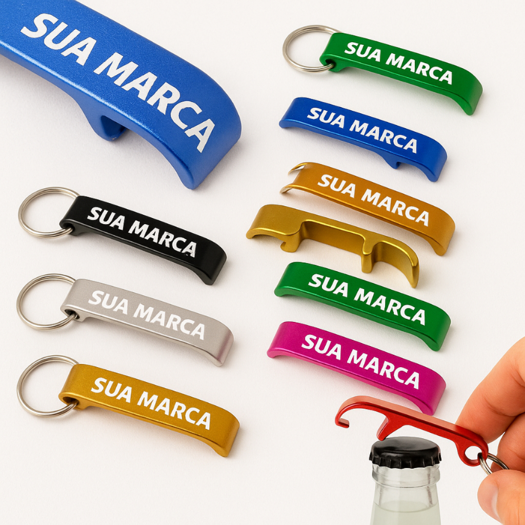 Kit Chaveiros Abridor Personalizados a Laser Não Personalizamos nomes individuais. ATENÇÃO, SE VOCÊ BUSCA APENAS PREÇO, procure outro fornecedor, PREZAMOS PELA QUALIDADE EM TODOS OS ENVIOS, E COBRAMOS O PREÇO JUSTO POR ISSO, SE MESMO ASSIM NOS ESCOLHER, FICAREMOS IMENSAMENTE FELIZES EM ATENDE-LO. O brinde número 1 do Brasil! Personalizamos seu abridor de garrafa com sua logo ou escrita a laser — não desbota, não sai e pode molhar. Temos produção própria, garantindo o melhor prazo de entrega do mercado! Como funciona: Após a compra, envie imediatamente seu logotipo e a cor desejada do chaveiro pelo chat. Formatos aceitos: PDF, PNG ou DXF. A personalização só começa após sua confirmação. Enviamos em até 24h após a gravação. Caso não envie os dados no prazo, o pedido será enviado sem personalização. Informações técnicas: Material: Alumínio Tamanho: 8,5 cm x 1 cm Área útil da gravação: 4,5 cm x 1 cm Gravação: Laser (PRATA), minimalista. Após a confirmação da arte, não há alteração. PERGUNTAS FREQUENTES: 1 - Como enviar seu logotipo após a compra? Nos chame no chat IMEDIATAMENTE, envie o projeto e nosso consultor irá te atender. (em horário comercial) 2 - Qual prazo de postagem após a compra? Geralmente de 2 - 3 dias corridos, exceto domingo. 3 - Posso escolher a cor? Depende do estoque diário de cada cor. Só conseguimos garantir a cor anunciada. Nos pergunte, que atenderemos com rapidez.