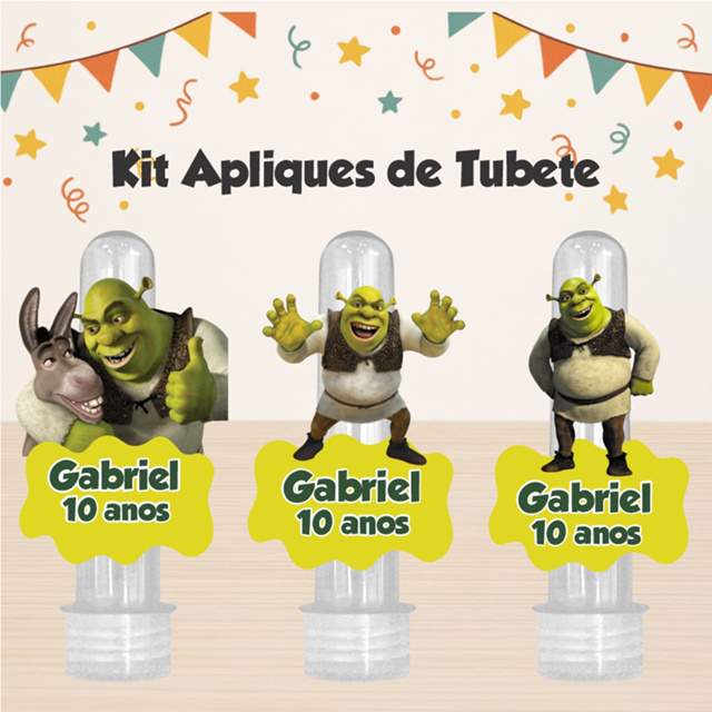 KIT 50 APLIQUE SHREK, LEMBRANCINHA, FESTA, TUBETE, MIMOS, ANIVERSÁRIO.TODOS OS TEMAS