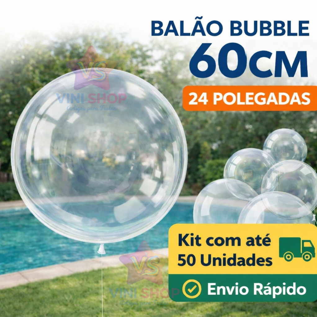 | Kit 50 Balão Bubble Transparente 60cm - 24 Polegadas Decoração Fest... este produto | R$ 14,49 | 27% | 4.9/5 | 100 |