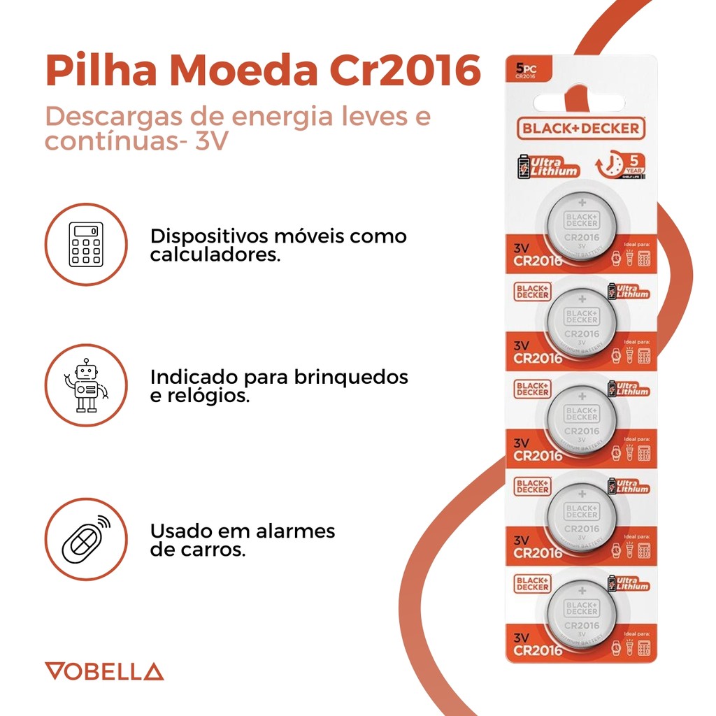 Kit 50 Baterias Moeda CR2016 3V Blister Relógio Black+Decker