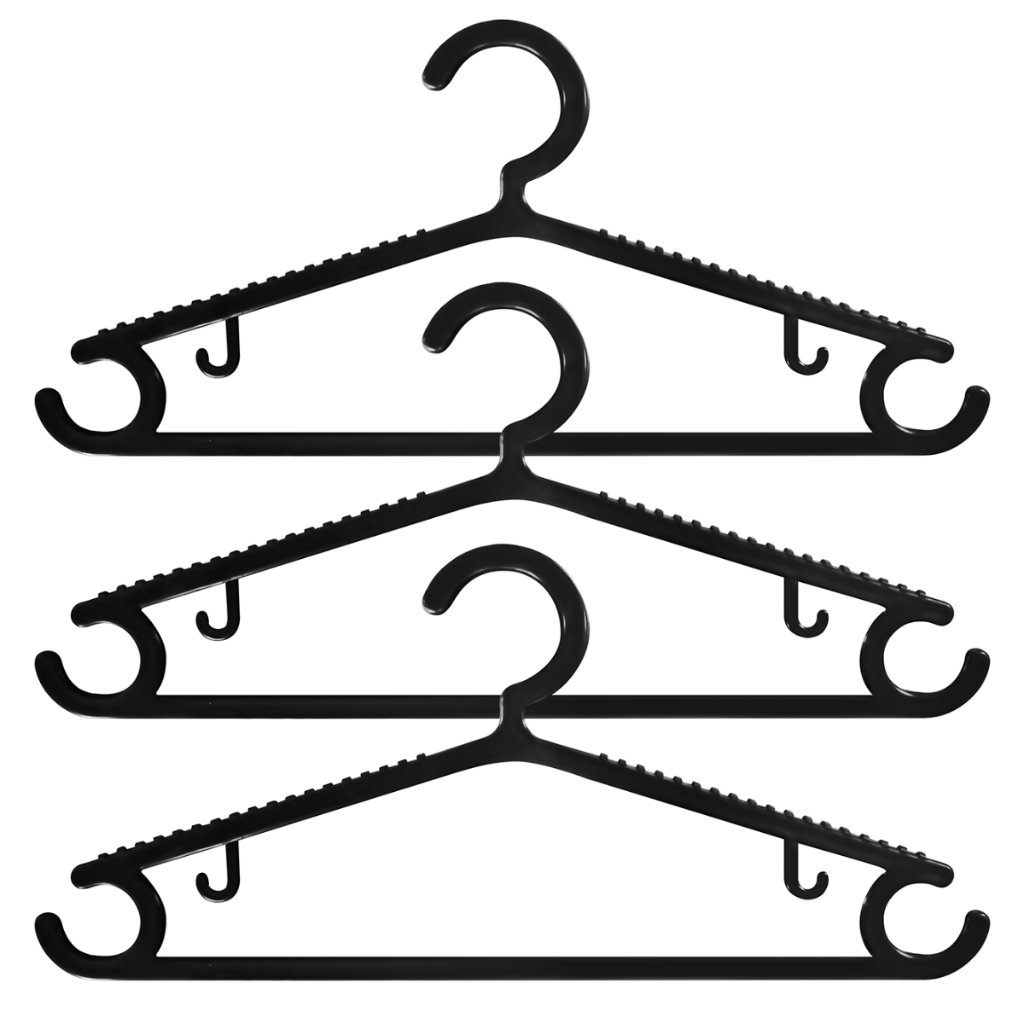 Kit 50 Cabides Adultos Reforçado com Gancho e Cava Antideslizante Preto