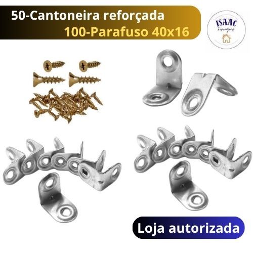 kit 50 Cantoneira 2 Furos mais 100 Parafuso 40x16 montagem