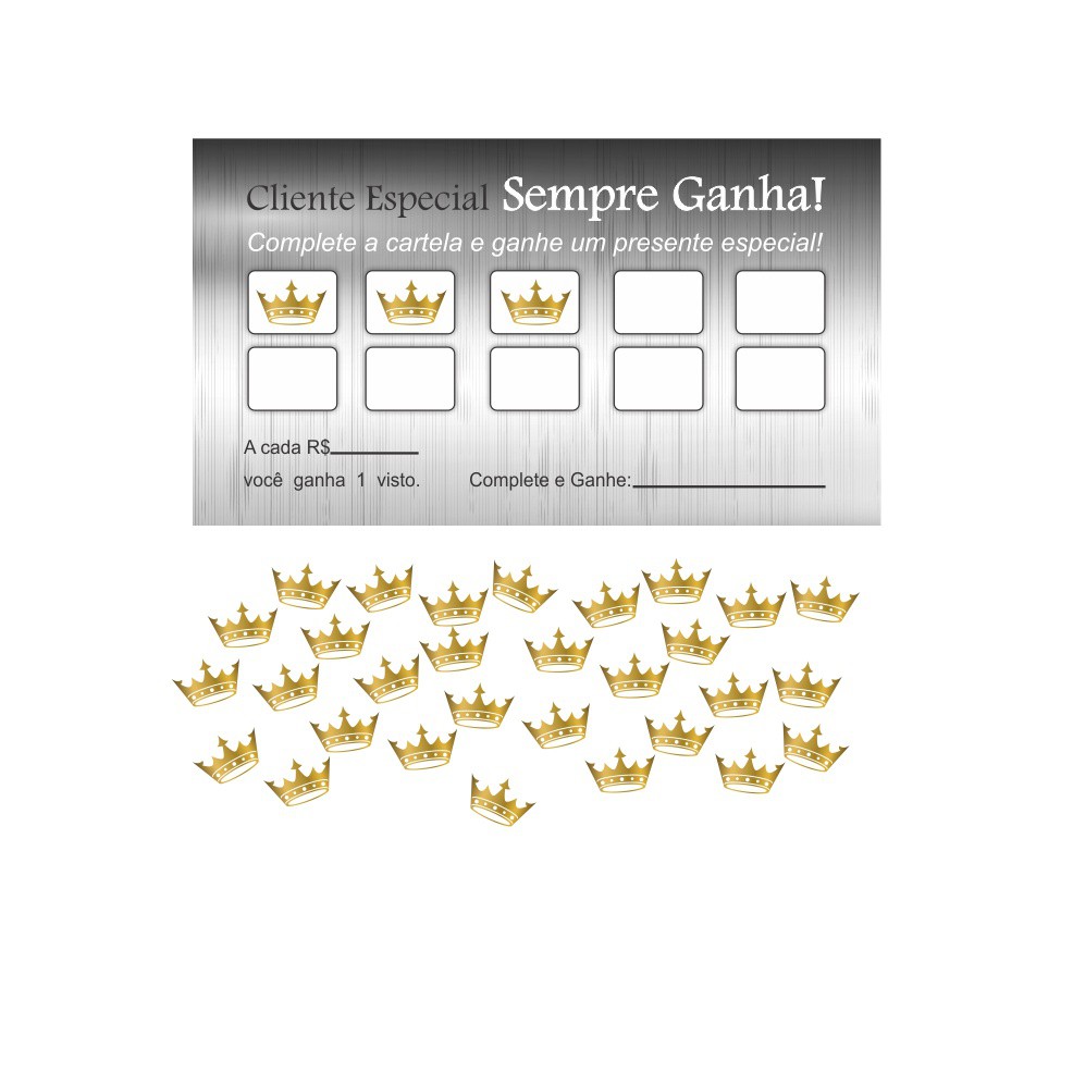 Kit 50 Cartões Fidelidade Mod5(Arabesco) + 250 Selos Adesivos Coroa