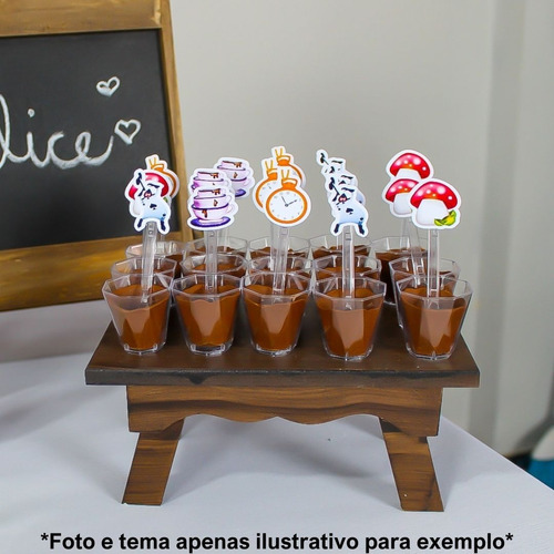 50 colherzinhas com personagem + 50 copinhos 20 ml Tudo montado, colado e pronto para uso. Personalizamos somente o tema, não colocamos nome ou idade!