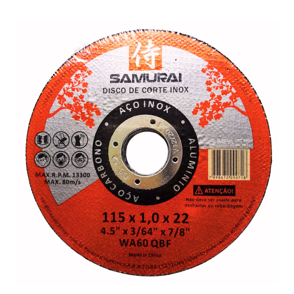 KIT 50 DISCO DE CORTE FINO ABRASIVO INOX 115X1.0X22mm 4 Pol SAMURAI