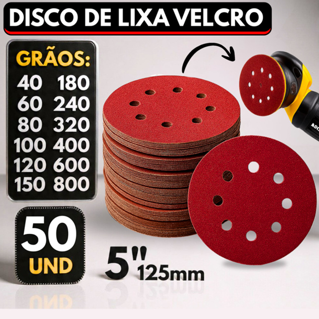 Catalogado na subcategoria Ferramentas (de Casa e Construção), Kit 50 Disco Lixa com Velcro 125mm 8 Furos Lixadeira Politriz Rokit Roto Orbital está à venda na Shopee Brasil por R$ 34,90 (79% de desconto sobre o preço original de R$ 166,19). Nota 4.9 de 5 na Shopee e 814 unidades vendidas, este produto se destaca pelo excelente custo-benefício.