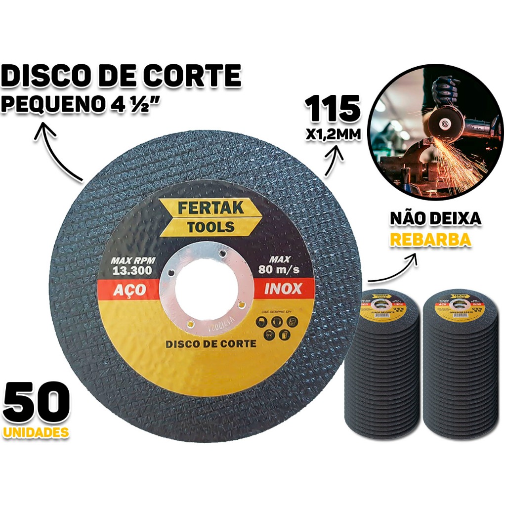 Kit 50 Discos De Corte Fino Inox Para Lixadeira Esmerilhadeira Profissional Fertak