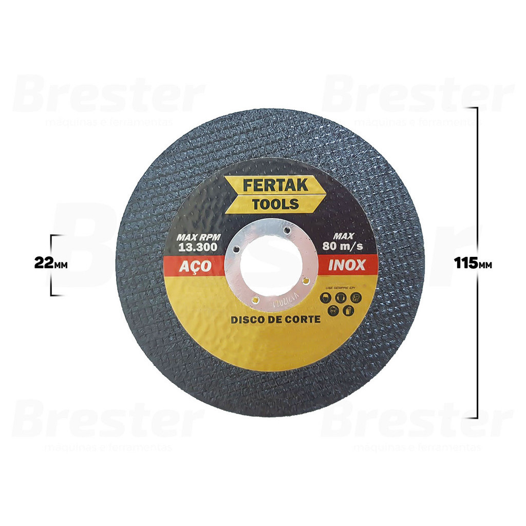 Olá, Bem vindo a Distribuidora Brester. Trabalhamos com uma grande variedade de ferramentas elétricas e manuais, descartáveis, eletroeletrônicos, artigos para casa, artigos de petshop e outros. Aqui você encontrará Produtos Originais, Nota Fiscal, Pronta Entrega e Envio Imediato! Informações do Produto: Kit 50 Discos De Corte Metal 115 x 1.0 Fertak Imagine realizar trabalhos com rapidez e precisão, sem se preocupar com desgaste excessivo. Com o Disco De Corte, você experimentará cortes suaves, tornando seus projetos mais eficientes e precisos. Características: > Duas telas reforçado; > Disco mais durável e áspero para uma maior vida útil;- > Ideal para cortes de metais nobres, como aço inox e também pode ser usado para corte de aço carbono e ferro. Especificações Técnicas: > Espessura: 1,2mm; > Rotação máxima 13.300 RPM/ 80 m/s; > Composição: grãos abrasivos, resina, metal e fibra de vidro. - Marca: Fertak - Garantia: 90 dias contra defeitos de fabricação Vantagens de comprar na Brester: - Nota fiscal para Pessoa Física e Pessoa Jurídica; - Produto novo, com garantia de fábrica; - Produto a pronta entrega; - Envio em até 24hs em dias úteis após confirmação do pagamento. Obrigado por escolher a Brester Máquinas.