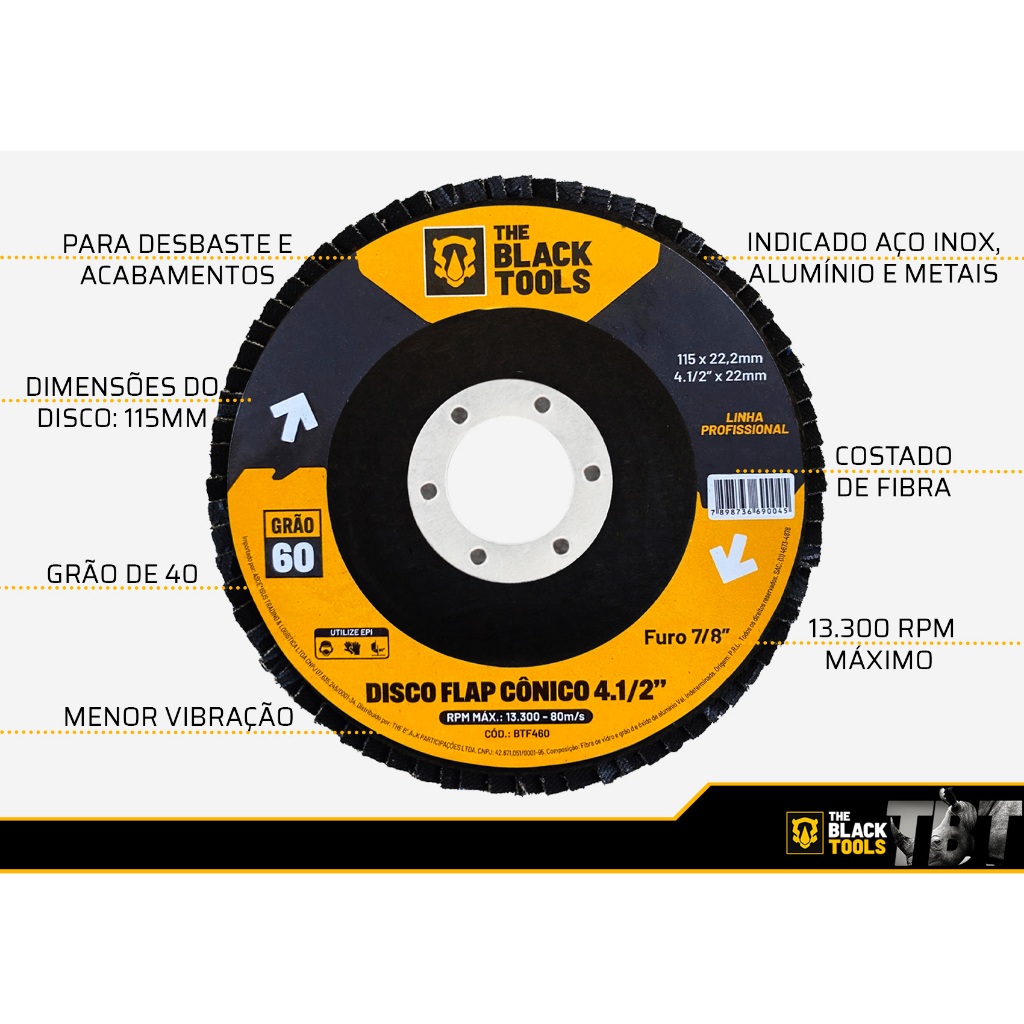 Kit 50 Discos Flap Grão 60 115 X 22mm Inox Esmerilhadeira The Black Tools