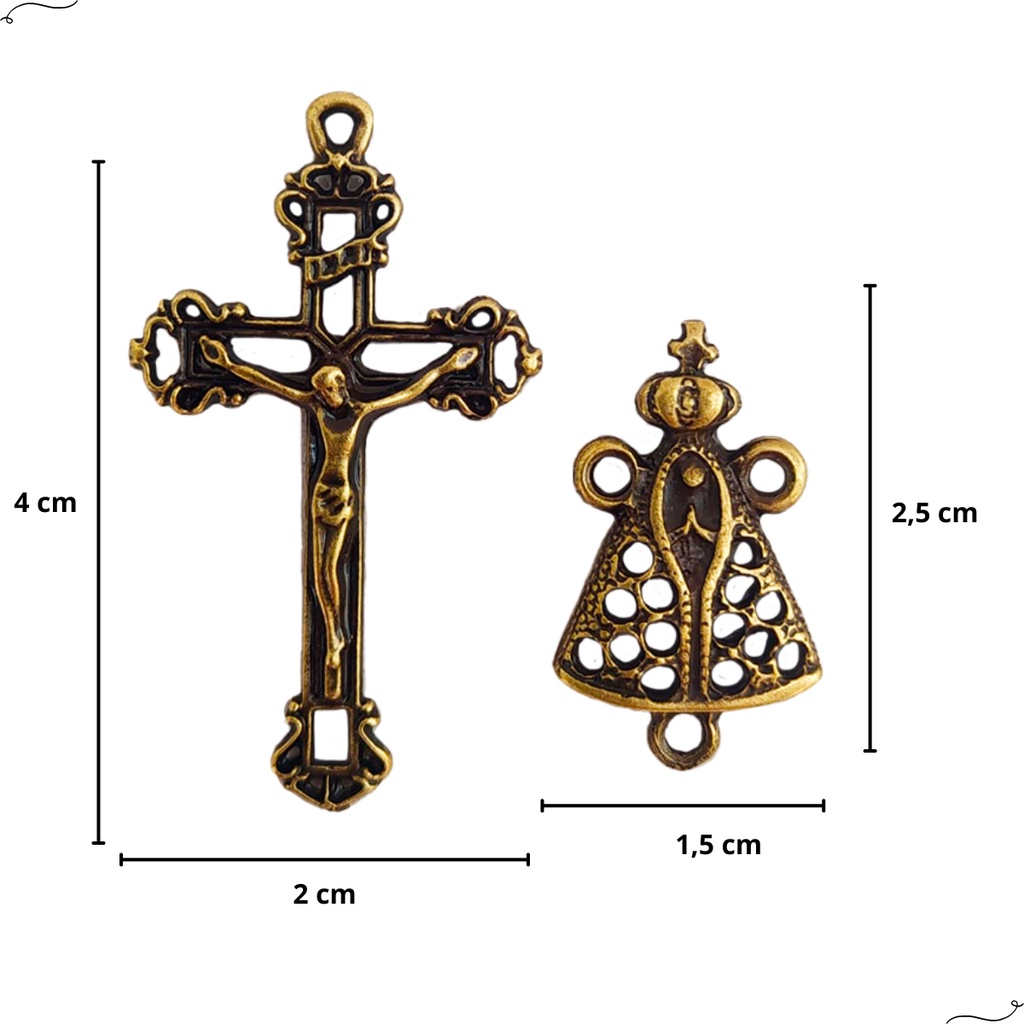 Com um encantador brilho as nossas peças irão encantar os mais rigorosos clientes. Seus terços ficarão sofisticados e elegantes, tornando-se verdadeiras graciosidades da obra Divina do Nosso Senhor! ------------------------ Especificações do produto: - Banho: Ouro Velho - Material: Zamac- Dimensões no anúncio!- Total de 50 crucifixos e 50 entremeios enviados! - Somos fabricantes, por conta disso temos o melhor preço! Kit com 5 modelos diferentes de crucifixos e 5 modelos diferentes de entremeios de diversos tamanhos; Serão enviados 10 Crucifixos de cada modelo 10 entremeios de cada modelo, dando um total de 50 crucifixos e 50 entremeios, portanto serão enviados 100 peças!As peças serão mandadas em proporções iguais, não será possível escolher!! --------------------------- Muito obrigado pela visita, que Deus te abençoe!