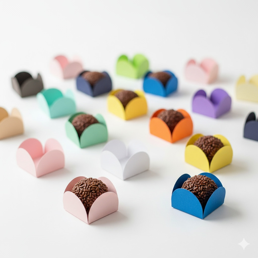 Kit 50 Forminhas p/ Doces Nº6 – Modelo 4 Pétalas – Diversas Cores – Plac