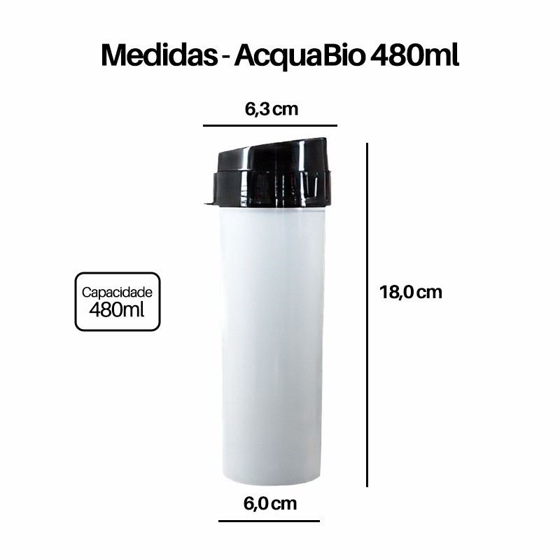Kit 50 Garrafas Acqua Bio Squeeze Acrílico 480ml Fitness Academia – Sem Personalização