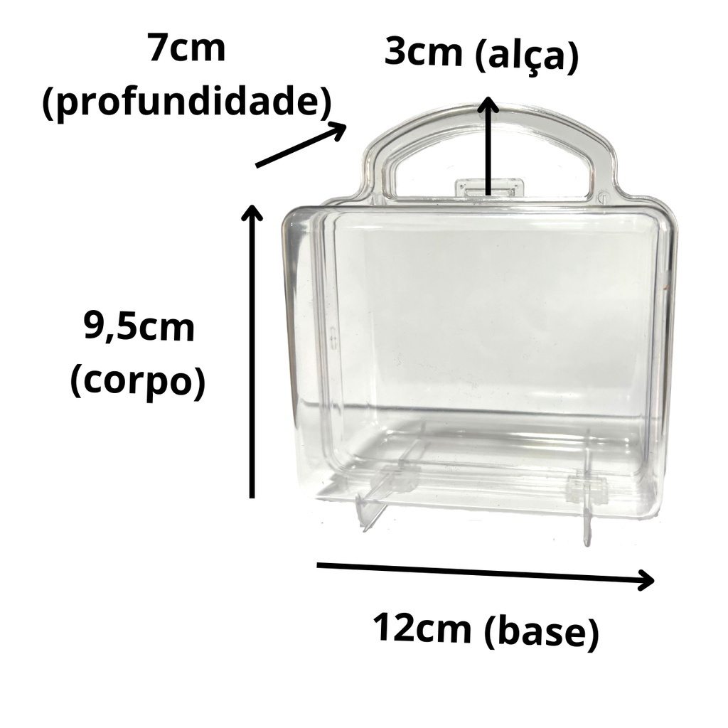 Características do Produto: Medidas com a alça: • Altura: 14,0 cm • Comprimento: 12,5 cm • Largura: 6,5 cm Marca: Deluma Plásticos Material resistente e de ótima qualidade Perfeita para personalizar e decorar qualquer tema ⚠️ ATENÇÃO: *** PARA COMPRAR MAIS QUE 50 UNIDADES, VOCÊ DEVE EFETUAR UMA OUTRA COMPRA DIFERENTE POIS SÓ CONSEGUIMOS ENVIAR 50 UNIDADES POR PEDIDO. Função: Armazenar e apresentar lembrancinhas de forma organizada, elegante e personalizada. Ideal para guardar doces, brinquedinhos, blocos, lápis, mini kits ou qualquer lembrancinha especial. Uso indicado: Perfeita para aniversários, casamentos, chá de bebê, batizados e eventos em geral. Quer conhecer os outros produtos que combinam com a maletinha para lembrancinha? Entre na nossa pagina e nos siga! Temos tubetes, caixinhas, latinhas, entre outros.