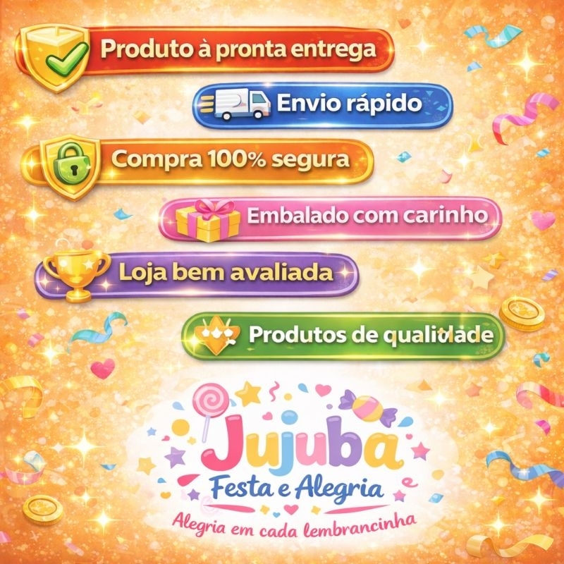 Vendido pela loja Jujuba Festa & Alegria e 2 produtos catalogados aqui no SuperOfertas Brasil. Esta loja ocupa a 75.799ª colocação no ranking de lojas por volume total de vendas registradas (entre 138.313 lojas).