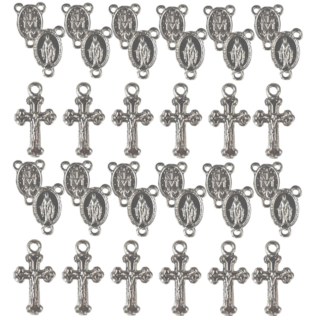 Kit 50 Mini Crucifixos + 50 Entremeios Para Montagem De Mini Terços e Lembrancinhas Católicas
