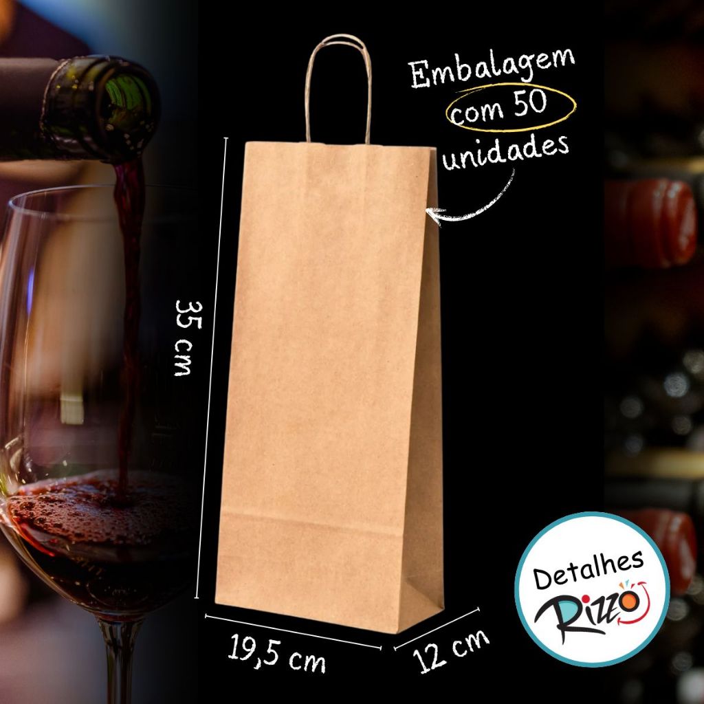 | Kit 50 Sacolas Kraft Bebidas, Vinho, Gim, Whisky Premium Lisa Embal... este produto | R$ 122,90 | — | 5.0/5 | — |