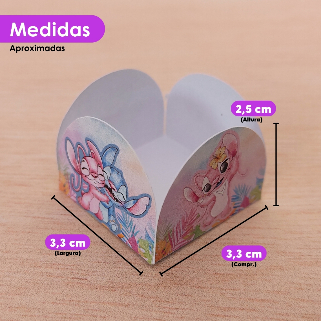Kit 50 Tags + 50 Forminhas Doces Docinhos Topper Brigadeiro Infantil Lilo e Stitch Angel Aquarela