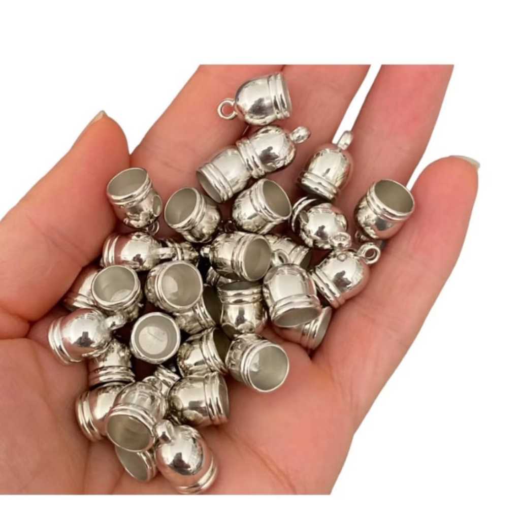Kit 50 terminal ponteira bijuteria colagem ABS prata, para montagem de acessórios e artesanatos