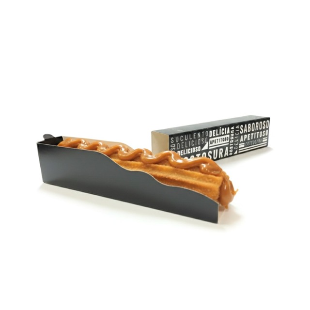Kit 50 Unidades Caixinha Churros Preto Embalagem Delivery Suporte Restaurante Confeitaria Food Truck Praça Alimentação