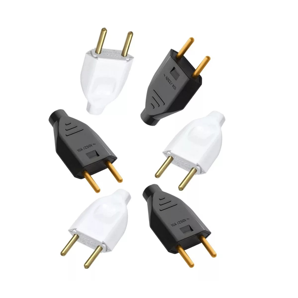 KIT 50 Unidades Plug Adaptador de Tomada Macho 2 Pinos Branco