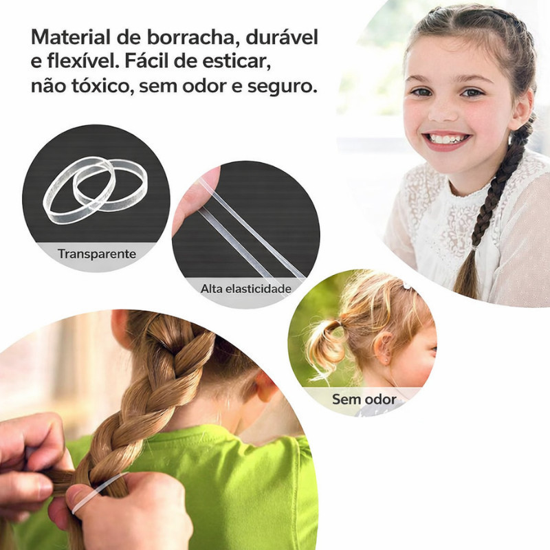 Kit 500 Elásticos de Silicone Transparente para Cabelo – Tranças e Penteados