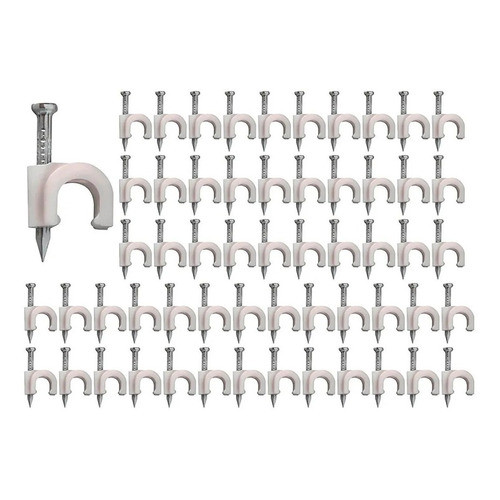 FIXA FIO 7MM - Prego de Aço Utilizado para fixar cabo 7mm. Organiza e valoriza o trabalho. 500 unidades (distribuídos e lacrados em pacotes de 100 unidades) Pregos de aço de alta resistência O Fixa Fio é utilizado para fixação de fios coaxiais nos diâmetros: 7mm em alvenaria ou madeira. -PRINCIPAIS VANTAGENS -Excelente resistência. -Facilidade na aplicação. -Proporciona melhor organização nos fios. -Estrutura com material em nylon(não resseca) -Temos a Pronta Entrega