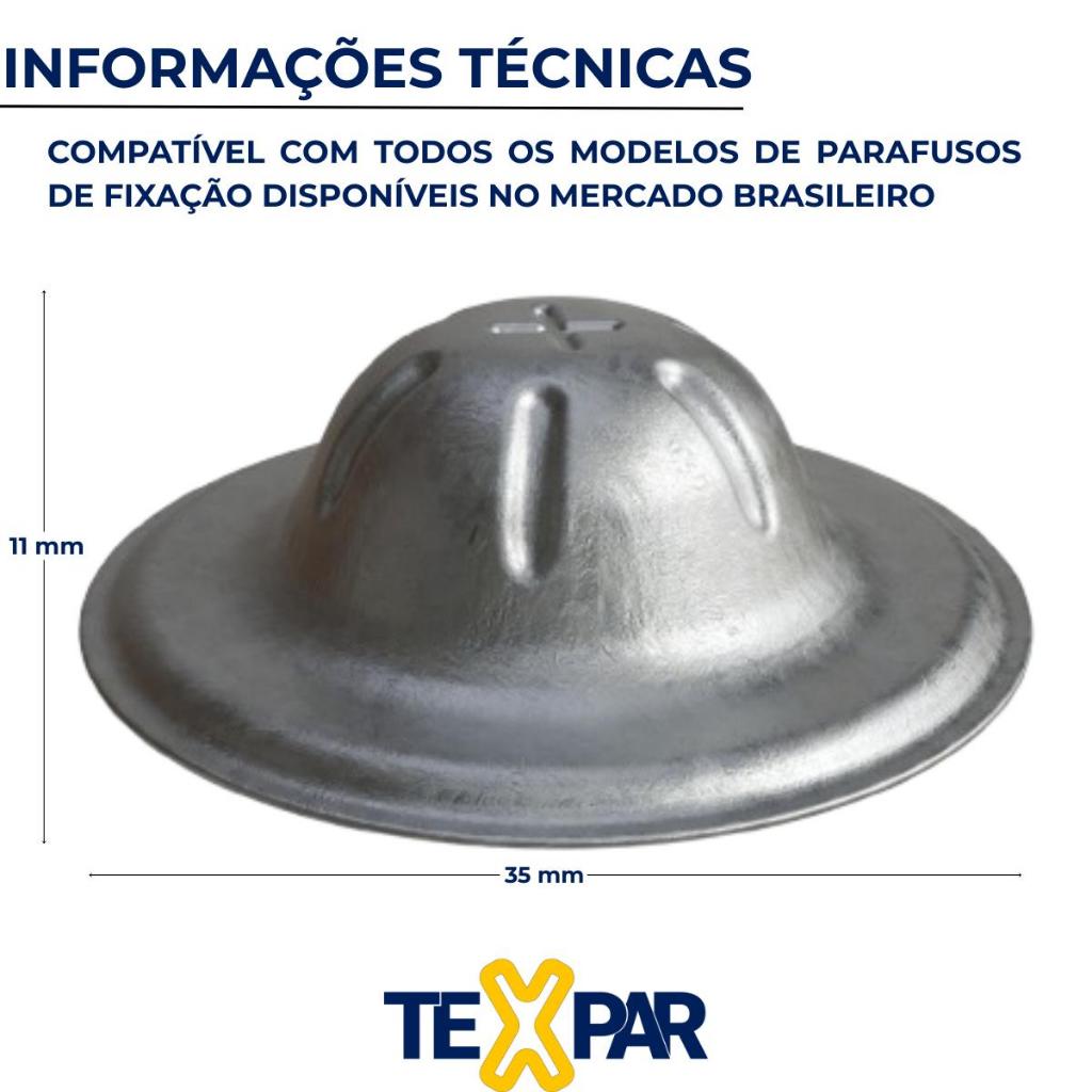 Proteja seu telhado com o Protetor TEXPAR! Fabricado em metal galvanizado, ele evita o ressecamento da borracha de vedação e infiltrações, bloqueando os raios UV do sol. Durável, discreto e do mesmo material do telhado, garante acabamento profissional e maior vida útil para sua cobertura. Ideal para parafusos de fixação em telhados metálicos. Material: Inox 304 Medida: parafuso com cabeça de 2,5cm de largura 1 cm de altura Espessura: 0,6mm Selecione a quantidade desejada no anuncio! ----------------------------------------------------- PERGUNTAS FREQUENTES: ----------------------------------------------------- Quantos protetores preciso para meu telhado? Recomenda-se 1 TEXPAR por parafuso. Basta verificar a quantidade de parafusos aparentes no seu telhado metálico. Oferecemos kits em diferentes quantidades para atender tanto pequenos reparos quanto grandes coberturas. Preciso de ferramenta ou mão de obra especializada para instalar? Sim, é necessária mão de obra especializada, mas quem já está fazendo a instalação do telhado será perfeitamente capaz de aplicar o TEXPAR. A instalação é simples e rápida, sem complicações ou ferramentas extras — basta incluir no processo normal da montagem Esse protetor serve em qualquer tipo de parafuso de telhado? Sim! O TEXPAR foi desenvolvido com medidas compatíveis com os principais modelos de parafusos usados em telhados metálicos, garantindo encaixe firme e cobertura total da borracha de vedação. Com o tempo, esse protetor não enferruja ou solta do parafuso? Não! Ele é fabricado em metal galvanizado, o mesmo material dos telhados, com alta resistência à corrosão. Além disso, seu design garante fixação segura através da cola PU, mesmo em ambientes com chuva, sol intenso ou maresia. ATENÇÃO: NÃO RECOMENDADO APLICAÇÃO COM COLA DE SILICONE. Qual a real vantagem de usar esse protetor no meu telhado? Além de evitar o ressecamento da borracha e infiltrações, o TEXPAR proporciona um acabamento mais limpo e profissional. Ele prolonga a vida útil da estrutura e reduz a necessidade de manutenções frequentes.