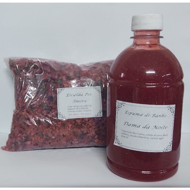 O kit é composto por 500gr. sais 250ml Banho de espuma brinde disponível no momento