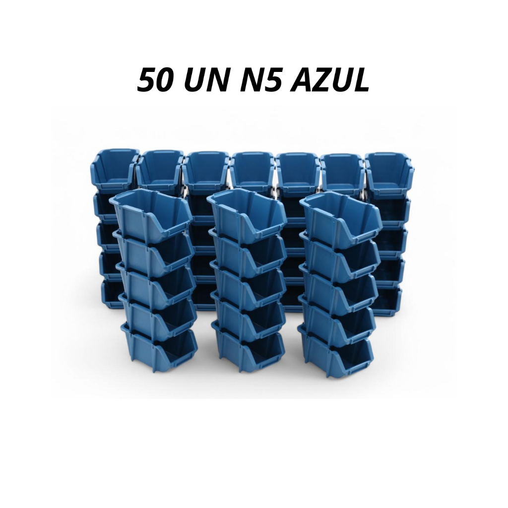 KIT 50UN caixas Bin Organizadoras de parafusos Plástico Azul N°05 Resistente Empilhavel