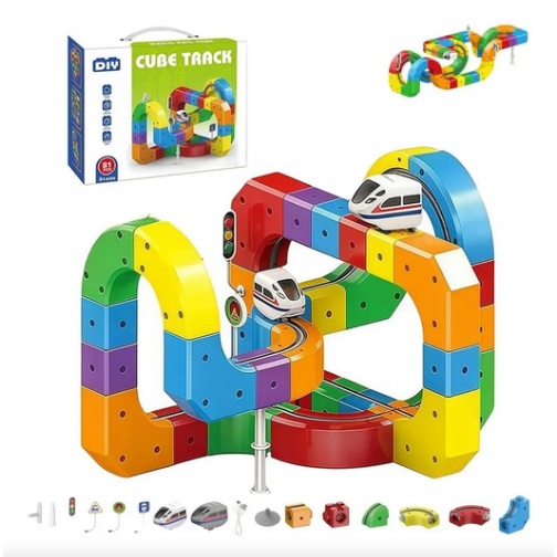 Kit 51/81/123 Trem Magnético Peças Cube Track Brinquedo Educativo De Blocos 3D Recarregável USB
