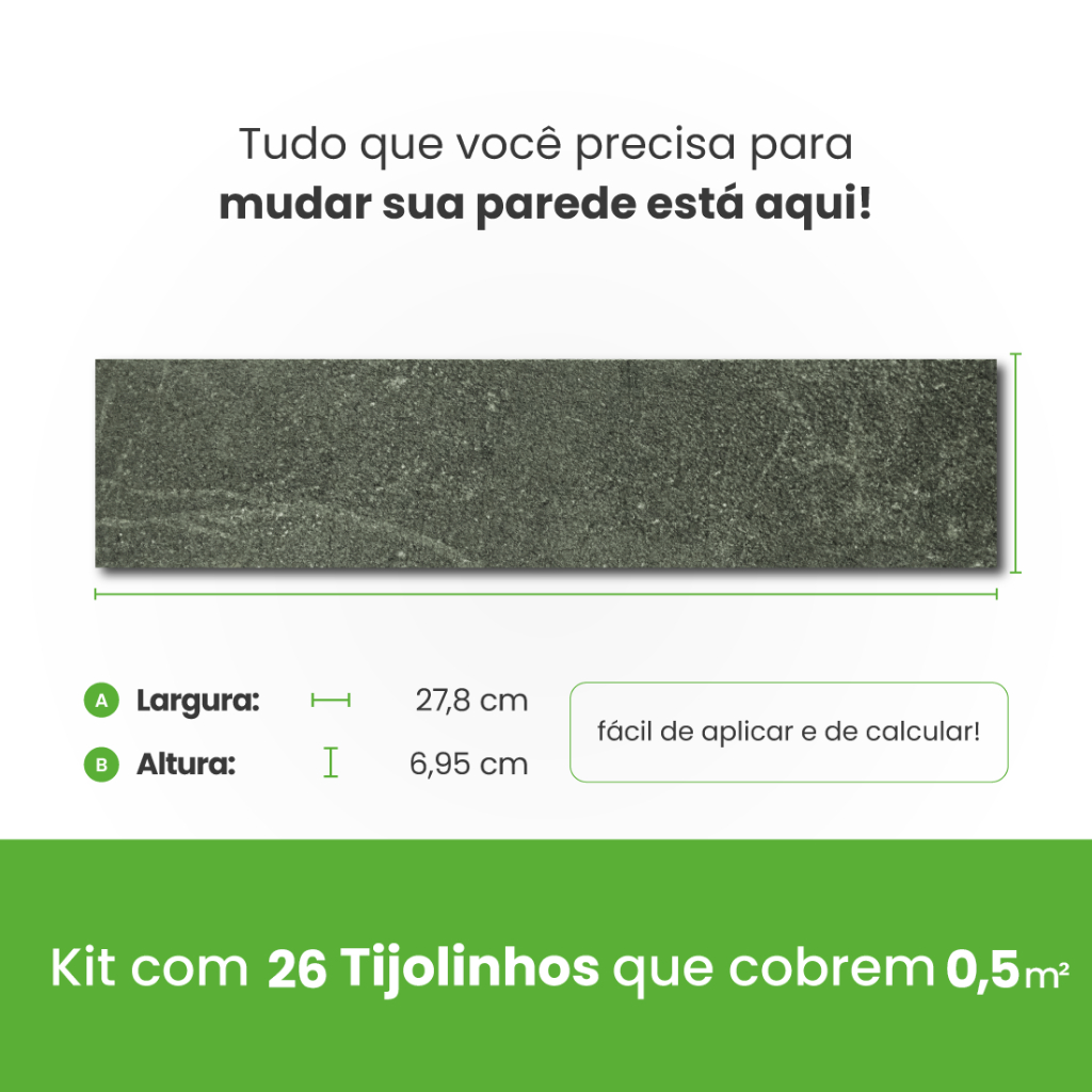 Kit 52 Placas 3D Autoadesivo Brick Pedra Flexível Autocolante 28cm x 7cm- 1M2 Cor Ardósia Verde