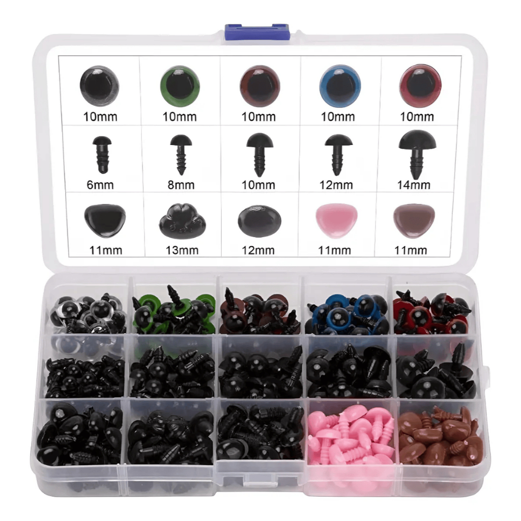 Kit 560 Peças Olhos Focinhos e Travas para Amigurumi Artesanato + Case