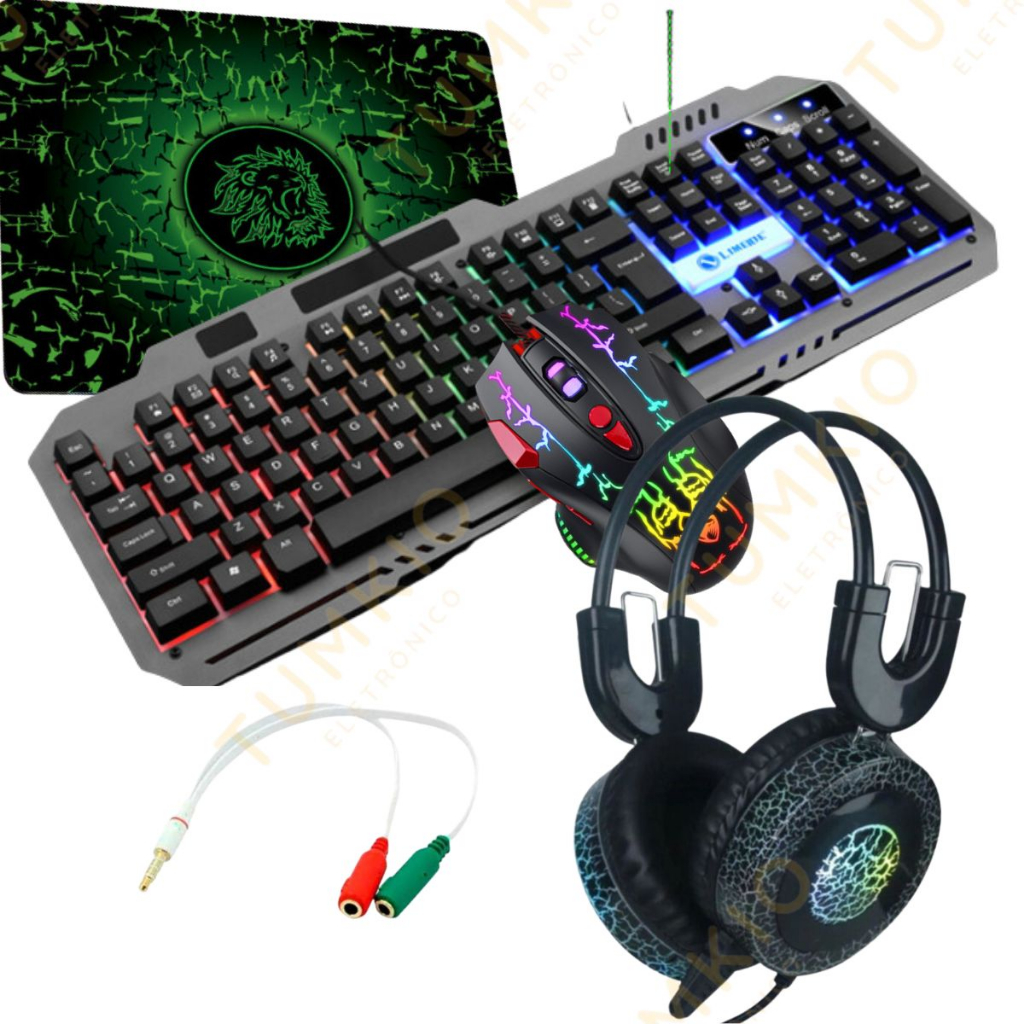 Kit 5in1 Teclado E Mouse E Gamer fone E mouse pad E adaptador de fone 5 em1 Conjunto de jogos competitivos COM FIO