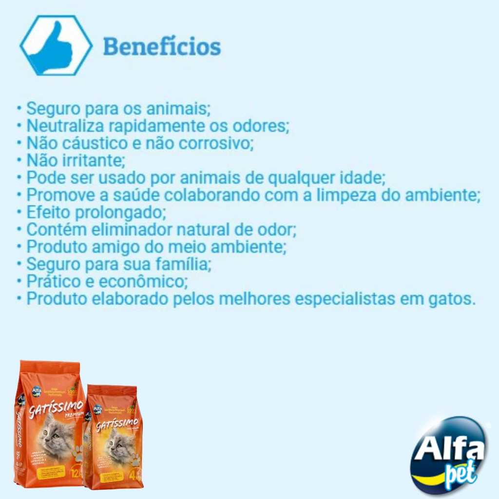 | Kit 5un. Areia Sanitária Higiênica Para Gatos Anti Odor Gatíssimo 2... este produto | R$ 58,64 | 20% | 4.9/5 | 293 |