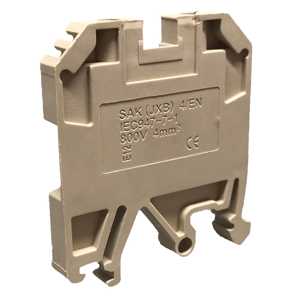Kit 5un Conector Borne Sak de passagem 4mm Bege Saki Elétrico Fixação Trilho Din Conexão Circuitos