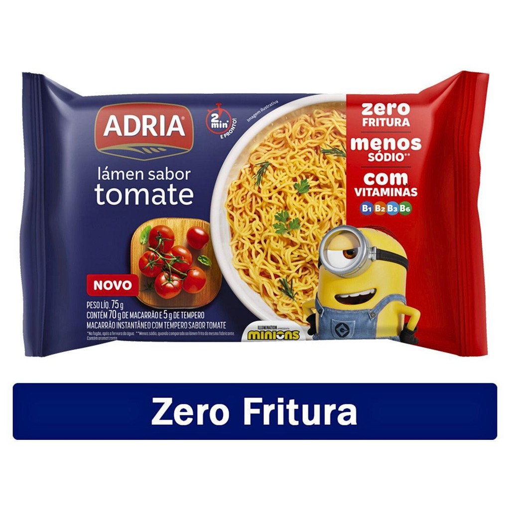 Experimente o novo Lámen Adria Zero Fritura! É perfeito para quem busca praticidade e sabor! Diferente da maioria das massas instantâneas, ele é produzido no fluxo de ar quente, sem fritura! Além disso, contém vitaminas B1, B2, B3 e B6. Experimente o irresistível sabor tomate. Novo Lámen Adria Zero Fritura, os concorrentes estão fritos!